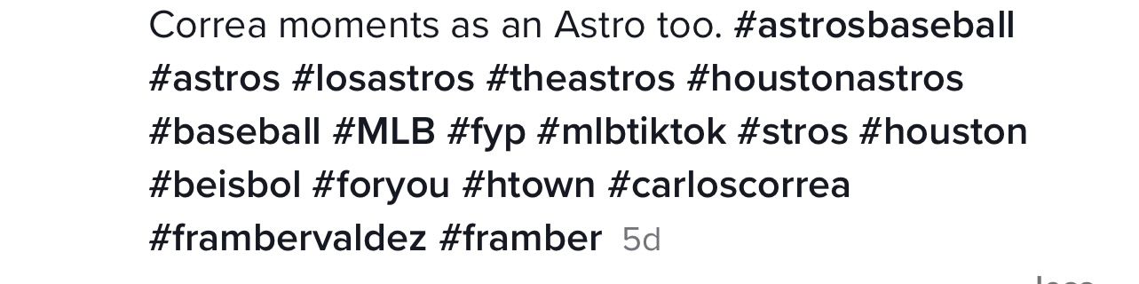 I was quite impressed with the results in terms of engagement, views, comments, and shares. Although TikTok's algorithm can be a bit tricky sometimes, the only post that was a victim of it was ironically my latest one which has been stuck on 400-450 views. Most of them had 1,000+ views and 100+ likes, with my most popular one being a video of Astros rightfielder Kyle Tucker getting ejected.It had 211.2K views, 9,723 likes, and received 213 comments. Tucker is usally one of the more reserved players on the team, so seeing him lash out on the first base umpire surprised a lot of fans including myself. A key strategy I used was including relevant hashtags so that I could reach my intended audience. It's always a point of emphasis of mine since without them there's serious limitations towards how well the post will perform, especially as a smaller account. A quick comparison of a post with and without hashtags is enough go convince any creator to use them. I tried to avoid uploading longer videos north of 2+ minutes, since lack of attention span is a very real thing in today's age. TikTok is more prone to people just swiping to the next video more than any other app since it just takes the flick of a thumb.